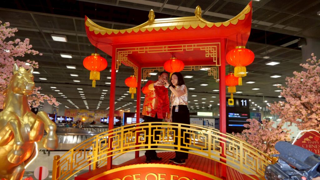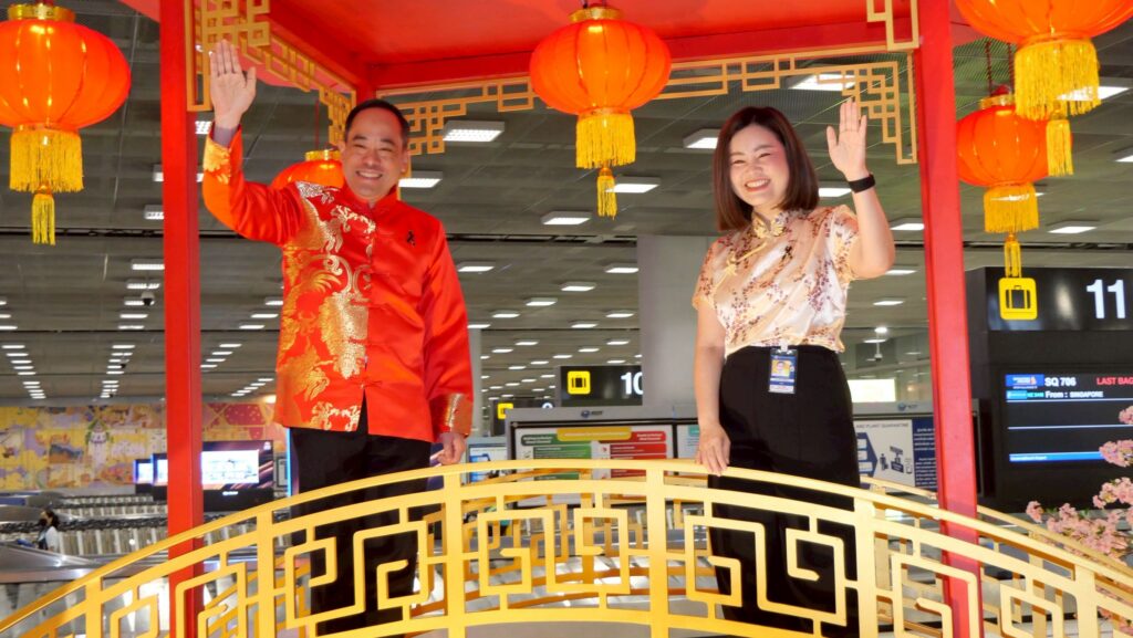ปีใหม่จีนแก่ผู้โดยสาร บริเวณซุ้มถ่ายภาพกิจกรรมตรุษจีนที่สายพานรับกระเป๋าหมายเลข 11 – 12 ชั้น 2 อาคารผู้โดยสาร ทสภ. พร้อมกันนี้ยังได้จัดการแสดงชุด “มิตรภาพไทย – จีน” เพื่อสร้างสีสันและบรรยากาศอันเป็นสิริมงคล สร้างความประทับใจแก่ผู้โดยสารตั้งแต่วินาทีแรกที่เดินทางถึงประเทศไทย และตอกย้ำความตั้งใจของ ทสภ.