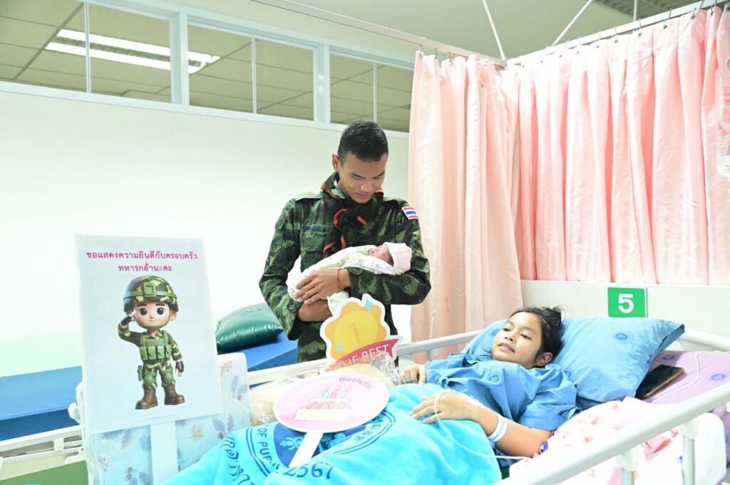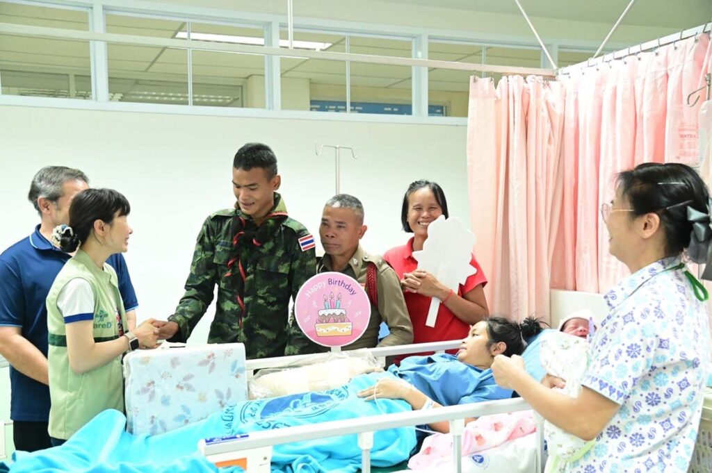 มุกดาหาร – ผู้อำนวยการโรงพยาบาลมุกดาหาร เยี่ยมและให้กำลังใจภรรยา บุตร และครอบครัวทหารกล้า นายทหารกองประจำการ ซึ่งมาคลอดบุตรและพักรักษาตัว