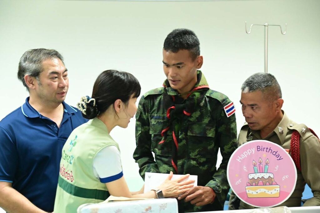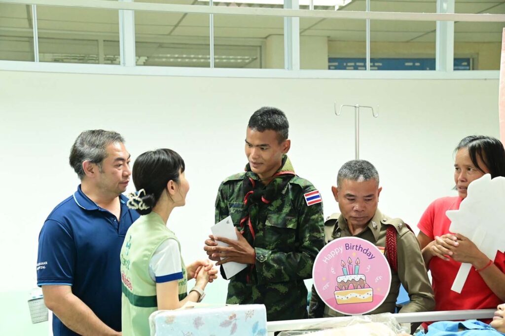 โดยโรงพยาบาลมุกดาหารได้ให้การดูแลรักษาพยาบาล พร้อมอนุเคราะห์ค่าใช้จ่ายตลอดการพักรักษาตัวในครั้งนี้ เพื่อสนับสนุนและยกย่องความเสียสละของทหารกล้า เพื่อเป็นการแสดงถึงความห่วงใยและการเสริมสร้างขวัญกำลังใจแก่ครอบครัวกำลังพลผู้เสียสละปฏิบัติหน้าที่เพื่อความมั่นคงของประเทศชาติต่อไป..