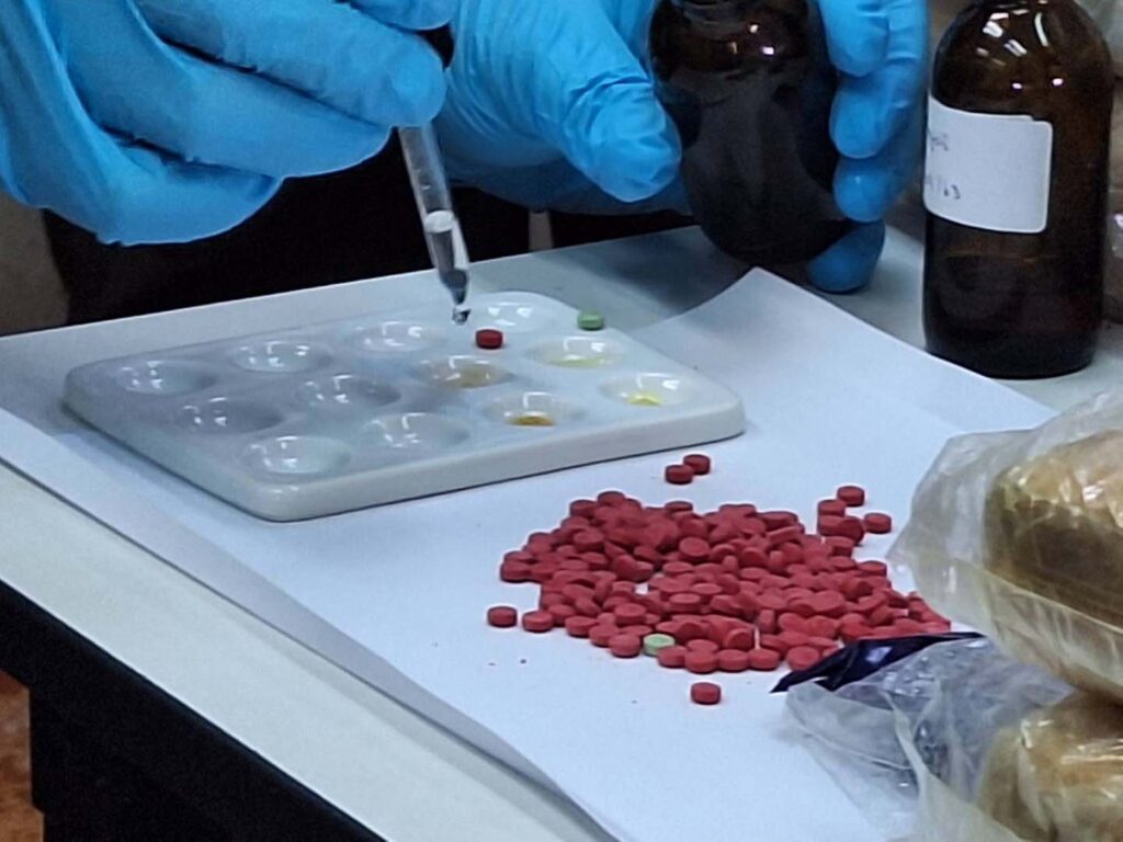 จากนั้น เจ้าหน้าที่จึงได้เข้าทำการตรวจสอบรถยนต์คันดังกล่าว พบกระสอบปุ๋ย จำนวน 2 กระสอบ วางอยู่ภายในห้องโดยสารด้านหลังเบาะคนขับ เมื่อเปิดดูภายในพบว่าเป็นยาบ้าจำนวนมาก (ประมาณ 400,000 เม็ด) ซุกซ่อนอยู่ เจ้าหน้าที่ชุดตรวจยึดจึงได้ทำการเคลื่อนย้ายรถยนต์ของกลางพร้อมยาเสพติดทั้งหมด นำมายังสถานีตำรวจภูธรเมืองมุกดาหาร ได้ทำการตรวจสอบของกลางอย่างละเอียดอีกครั้ง จึงได้ทำบันทึกการตรวจยึดและประสานเจ้าหน้าที่พิสูจน์หลักฐาน (พฐ) เข้าเก็บรวบรวบรวมพยานหลักฐานทางนิติวิทยาศาสตร์ (DNA/ลายนิ้วมือแฝง) ภายในรถยนต์เพื่อใช้ในการติดตามตัวผู้กระทำความผิดมาดำเนินคดี และได้แจ้งข้อกล่าวหาว่า “มียาเสพติดให้โทษประเภท 1 (ยาบ้า) ไว้ในครอบครองโดยไม่ได้รับอนุญาต อันเป็นการกระทำเพื่อการค้า และก่อให้เกิดการแพร่กระจายในกลุ่มประชาชน” (ผู้ต้องหาหลบหนี) ก่อนนำของกลางทั้งหมด ส่งพนักงานสอบสวน สภ.เมืองมุกดาหาร เพื่อดำเนินการสืบสวนสอบสวนติดตามเจ้าของรถและผู้กระทำความผิดมาดำเนินคดีตามกฎหมายต่อไป..