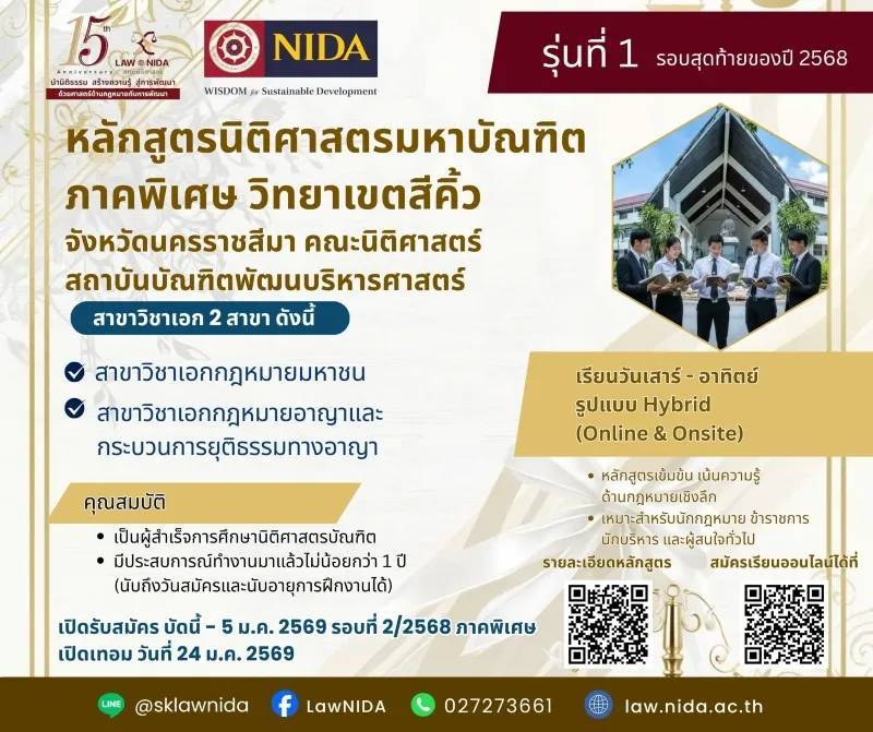 รายละเอียดหลักสูตร: law.nida.ac.th/how-to-apply-llm-sikhio-campus/