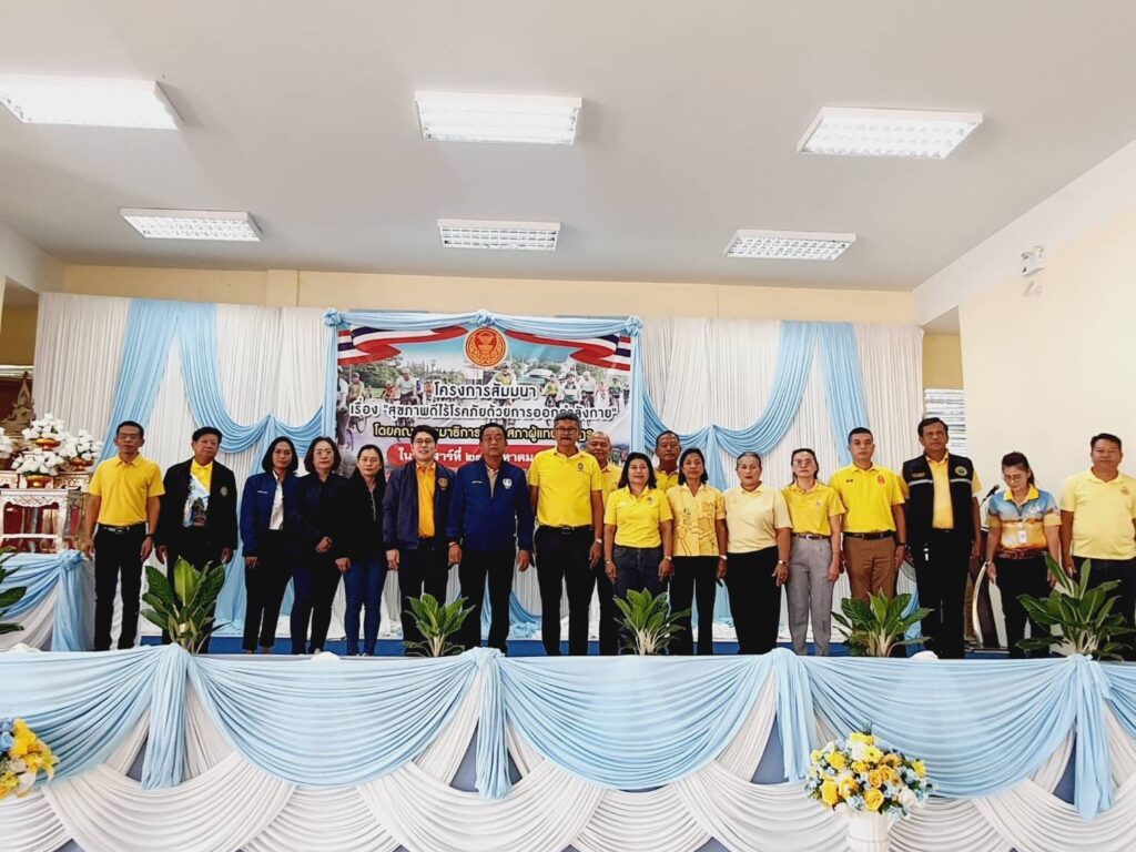 วันที่ 23 สิงหาคม 2568 เวลา 09.00 น. นายสุกิจ มีพริ้ง นายอำเภอท่าฉาง พร้อมด้วย นางศรีเวียง มีพริ้ง ผู้อำนวยการศูนย์วิจัยและพัฒนาการเกษตรสุราษฎร์ธานี หัวหน้าส่วนราชการ ผู้อำนวยการสถานศึกษา ผู้บริหารองค์กรปกครองส่วนท้องถิ่น กำนัน ผู้ใหญ่บ้าน ฯลฯ อาสาสมัครสาธารณสุขประจำหมู่บ้าน (อสม.) ให้การต้อนรับ นายพิชัย ชมภูพล สมาชิกสภาผู้แทนราษฎร์จังหวัดสุราษฎร์ธานี เขต 6 พรรคภูมิใจไทย / รองประธานคณะกรรมาธิการกีฬา คนที่ 3 สภาผู้แทนราษฎร เป็นประธานพิธีเปิดโครงการสัมมนาเรื่อง “สุขภาพดีไร้โรคภัยด้วยการออกกำลังกาย” ณ หอประชุมอำเภอท่าฉาง โดยมีวัตถุประสงค์เพื่อกำหนดแนวทางการเสริมสร้างศักยภาพการกีฬาในการสร้างคุณค่าทางสังคมและพัฒนาประเทศ มุ่งส่งเสริมการใช้กิจกรรมนันทนาการและกีฬาเป็นเครื่องมือในการเสริมสร้างสุขภาวะของประชาชนอย่างครบวงจรและมีคุณภาพมาตรฐานการสร้างนิสัยรักกีฬาและมีน้ำใจเป็นนักกีฬา การใช้กีฬาและนันทนาการในการพัฒนาจิตใจ สร้างความรักความสามัคคีของคนในชาติ หล่อหลอมการเป็นพลเมืองดี พัฒนาคุณภาพชีวิต พัฒนาทักษะด้านกีฬาสู่ความเป็นเลิศและกีฬาเพื่อการอาชีพในระดับนานาชาติ ในการสร้างชื่อเสียงและเกียรติภูมิของประเทศชาติ เพื่อรองรับอุตสาหกรรมกีฬา สอดคล้องกับยุทธศาสตร์ชาติ พ.ศ. 2561 – 2580 ซึ่งได้กำหนดแนวทางการเสริมสร้างศักยภาพการกีฬาในการสร้างคุณค่าทางสังคมและพัฒนาประเทศ ส่งเสริมและพัฒนาการออกกำลังกายและกีฬาเพื่อมวลชนเป็นวิถีชีวิตตามนโยบายของสมาชิกวุฒิสภา โดยสำนักงานประธานวุฒิสภาและผู้ว่าราชการจังหวัดสุราษฎร์ธานีในฐานะประธานคณะกรรมการกีฬาจังหวัด ซึ่งสอดคล้องกับประเด็นการพัฒนาที่ 2 การส่งเสริมและพัฒนาการออกกำลังกายและกีฬาเพื่อมวลชนเป็นวิถีชีวิต ใช้เวลาว่างให้เกิดประโยชน์ ห่างไกลยาเสพติด และน้อมนำแนวทางการดำเนินงานตามโครงการ TO BE NUMBER ONE ในทูลกระหม่อมหญิงอุบลรัตนราชกัญญา สิริวัฒนาพรรณวดี มุ่งเน้นกิจกรรมสร้างสรรค์และปลูกฝังทัศนคติ “การเป็นหนึ่งโดยไม่พึ่งยาเสพติด”