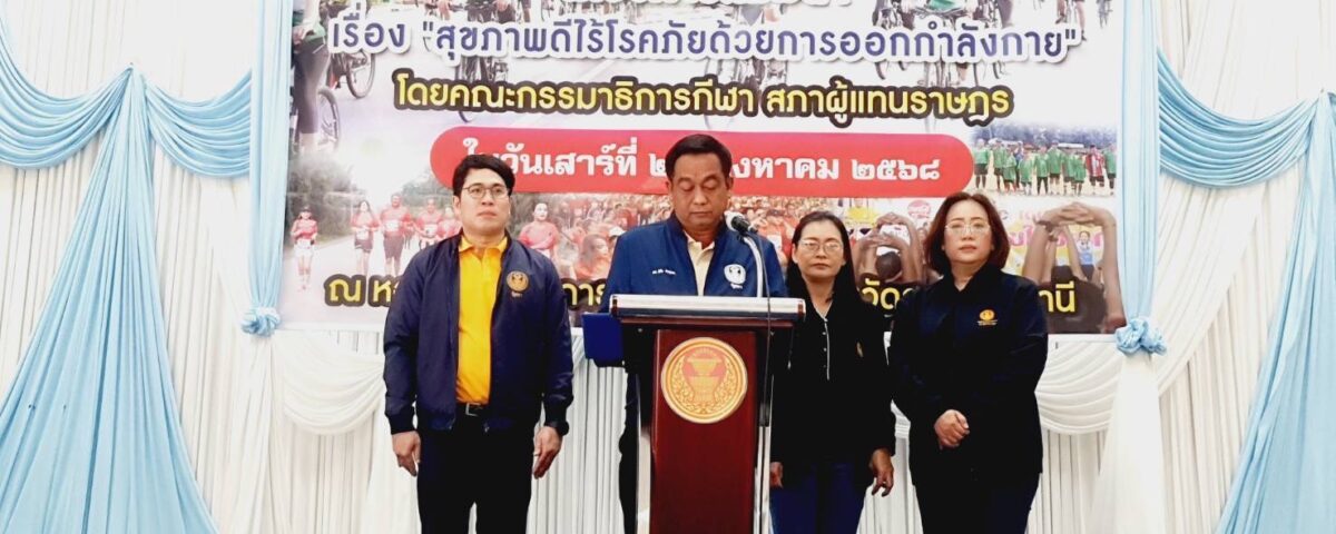 นายพิชัย ชมภูพล สมาชิกสภาผู้แทนราษฎร์จังหวัดสุราษฎร์ธานี รองประธานคณะกรรมาธิการกีฬา สภาผู้แทนราษฎร เป็นประธานพิธีเปิดโครงการสัมมนาเรื่อง “สุขภาพดีไร้โรคภัยด้วยการออกกำลังกาย”